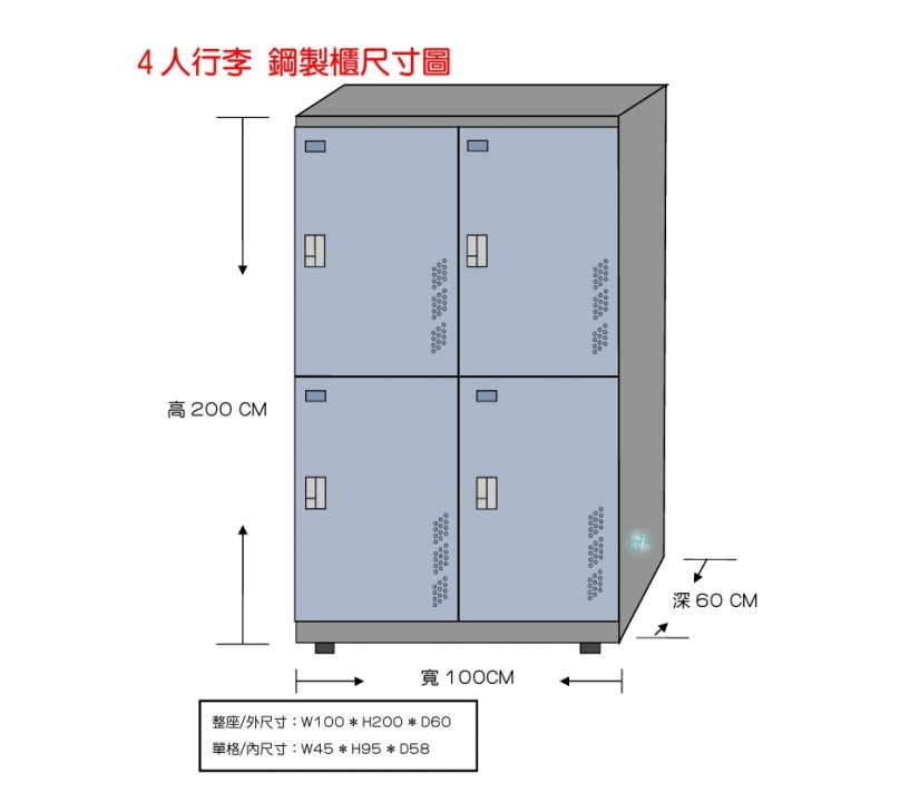 4人鋼製櫃- 感應電子鎖/行李櫃-加高&加重結構處理(寬100高200 深60 公分)